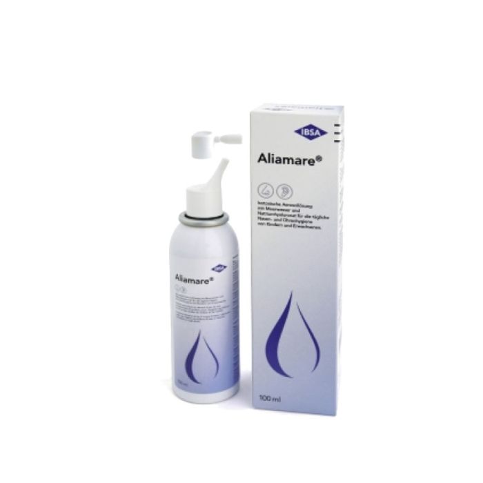 Soluzione isotonica spray di acqua di mare e ialuronato sodico. Aliamare associa l'azione benefica e fluidificante dell'acqua marina proveniente dall'Arcipelago di Bre'hat, luogo naturalistico della Bretagna classificato Natura 2000, all'azione dell'acido ialuronico, che grazie alla sua capacità di legare e trattenere acqua, è in grado di idratare la mucosa e favorire la cicatrizzazione di eventuali microlesioni. La diluizione dell'acqua di mare fino a concentrazione isotonica rende inoltre Aliamare non irritante.