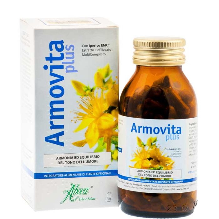 Armovita plus opercoli è un prodotto innovativo in quanto è formulato in base alle più recenti acquisizioni della Ricerca Aboca che, grazie alle conoscenze sui componenti fitochimici presenti nelle piante officinali, ha messo a punto una tecnologia estrattiva d’avanguardia che è in grado di realizzare estratti liofilizzati caratterizzati nelle diverse frazioni funzionali. Questa particolare tecnica consente di ottenere un Estratto Liofilizzato di Iperico MultiComposto (Iperico EMC®) standardizzato nel contenuto di ipericina e iperforine, a garanzia di un corretto rapporto quali/quantitativo di queste sostanze. Inoltre l’esclusiva associazione con il concentrato totale di Griffonia semi, ricco in 5-Idrossi-Triptofano (5-HTP), garantisce una sinergia funzionale per una pronta azione sul fisiologico stato dell’umore.