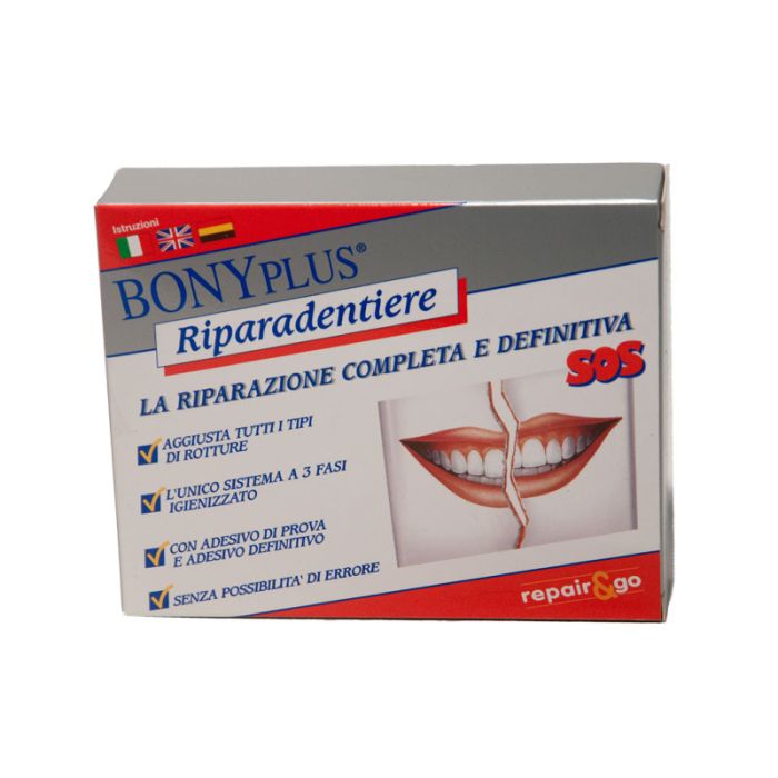 Sistema a tre fasi che garantisce la riparazione di qualsiasi rottura della dentiera, in modo facile, sicuro e senza possibilità di errore, in quanto è