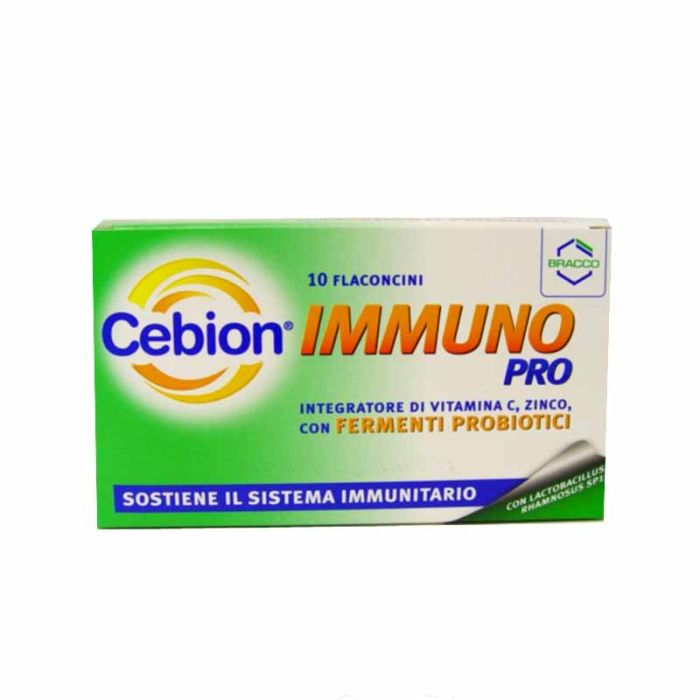 Grazie all'azione combinata e sinergica dei suoi componenti sul sistema immunitario, Cebion Immuno Pro è il giusto mix per affrontare al meglio la stagione invernale (o altri periodi dell'anno quando più utile può risultare una corretta integrazione alimentare). La vitamina C è un nutriente essenziale per l'organismo, favorisce le sue normali funzione fisiologiche e supporta in maniera proattiva le funzioni di difesa. Lo zinco è un minerale importante per il sistema immunitario in quanto partecipa attivamente al processo di stimolazione delle cellule immunitarie responsabili dell'azione di difesa contro gli agenti patogeni. I fermenti probiotici del ceppo Lactobacillus Rhamnosus SP1, in quantità adeguatamente utile (3 miliardi di ceppi vivi) e garantita fino al termine di conservazione, sono in grado di superare indenni l'acidità del tratto superiore del sistema gastrointestinale e raggiungere il colon, ove favoriscono il riequilibrio della microflora intestinale.
