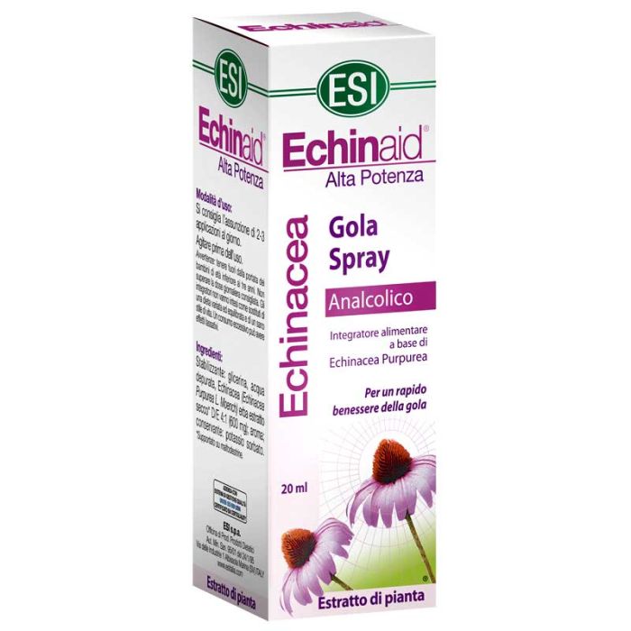Ecologico senza alcool e glicole, a base di echinacea estratto, utile per conferire un rapido sollievo alla gola ed alle mucose del cavo orale.