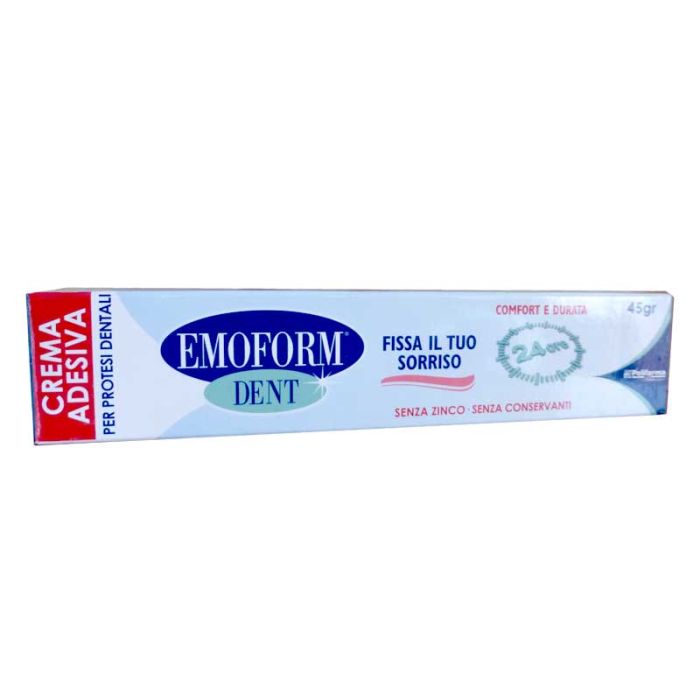 Emoform crema dentiere garantisce tenuta rapida, sicura e duratura della dentiera per tutto il giorno impedisce le infiltrazioni di cibo tra protesi e gengive, per una bocca sempre fresca e pulita protegge da infiammazioni e dolore al palato e gengive nei punti di pressione.