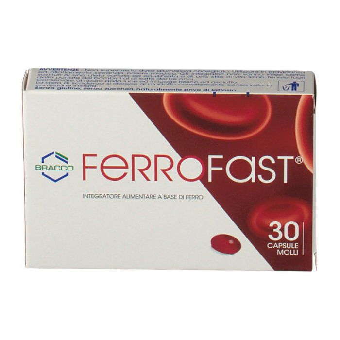 Integratore alimentare a base di ferro in liposomi utile in presenza di carenze alimentari o di aumentati fabbisogni organici di tale minerale. Formulato in capsule molli di facile deglutizione e rapido assorbimento, disponibile in diversi dosaggi utili in tutti i casi in cui è necessaria un'integrazione di ferro. La sofisticata tecnologia di rivestimento e veicolazione del ferro pirofosfato in liposomi, utilizzata per Ferrofast® assicura una elevata biodisponibilità del minerale e un'ottima tollerabilità a livello gastrico. Ferrofast® ha un gradevole sapore, senza retrogusto metallico.