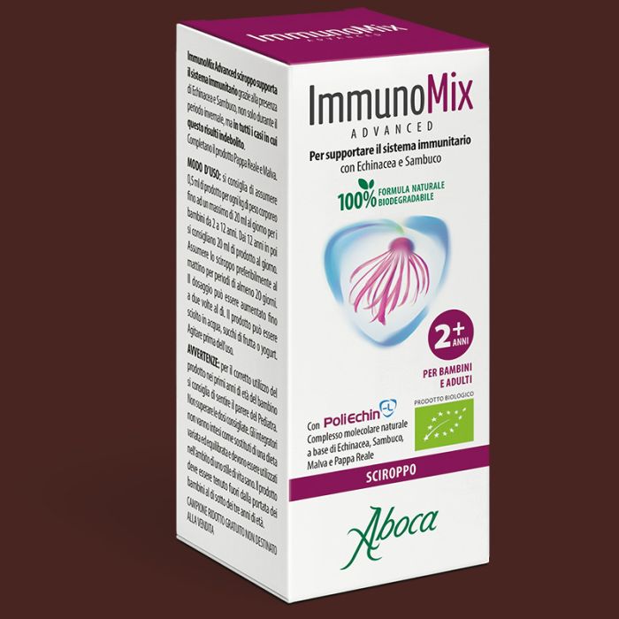Immunomix Advanced sciroppo è un prodotto 100% naturale, frutto della Ricerca Aboca, utile per coadiuvare le naturali difese dell'organismo grazie all'estratto liofilizzato multifrazione di Echinacea (Echina2-LMF) e al succo concentrato di Sambuco.