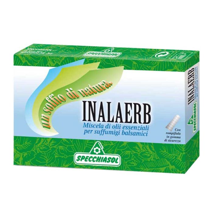 Inalaerb è una miscela di oli essenziali (Eucalipto, Cajeput, Pino e Rosmarino) utile per suffumigi balsamici. Unisce la tradizionale efficacia dei suffumigi con tutta la forza degli oli essenziali balsamici puri Specchiasol.