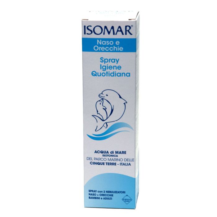 Acqua di mare isotonica. Flacone spray da 100 ml, con 2 nebulizzatori per naso e orecchie.