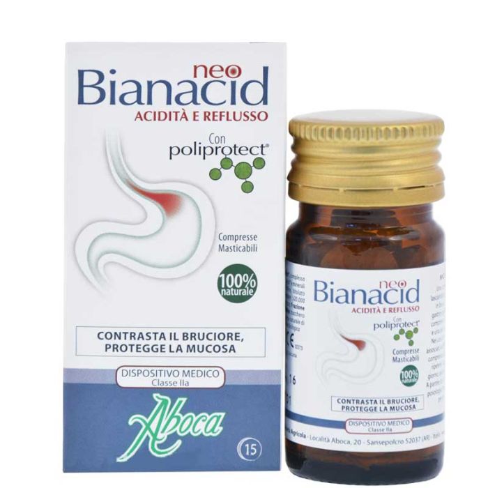NeoBianacid Acidità e Reflusso è prodotto con ingredienti da agricoltura biologica e senza glutine.