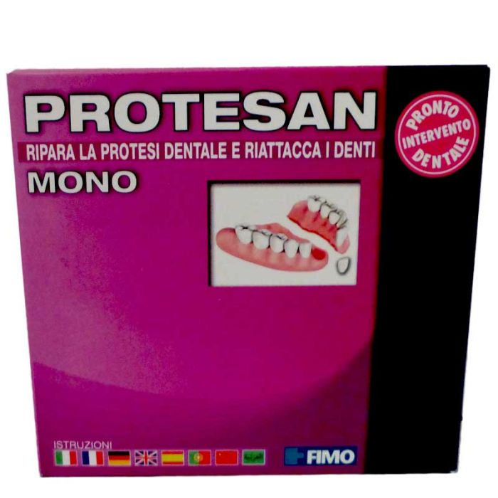 Resina odontotecnica bicomponente a freddo. Non contiene sostanze cianoacrilate nocive o allergenizzanti. Non pregiudica il successivo intervento del dentista. E' l'unico con base in plastilina per posizionare la protesi e semplificare la riparazione.