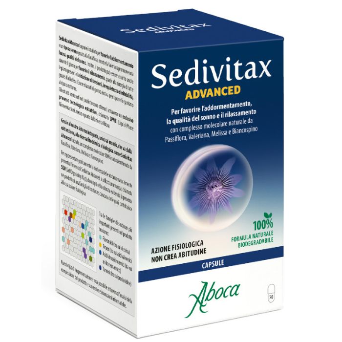 L'azione di Sedivitax opercoli è dovuta all'associazione sinergica degli estratti liofilizzati di Valeriana, Melissa ed Escolzia ed in particolare al complesso brevettato Passiflò2-LMF, ottenuto dalla combinazione di due frazioni estrattive ad alto titolo di flavonoidi, che esaltano le note proprietà distensive e favorenti il sonno della Passiflora.